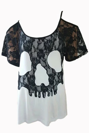 This is an awesome gothic, ladies short sleeve top designed by Banned Apparel, the “aura top”, with a lace skull design and lace sleeves, available in a choice of colours.