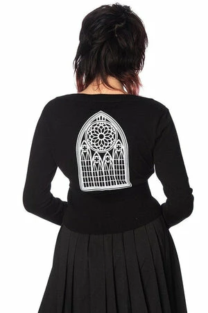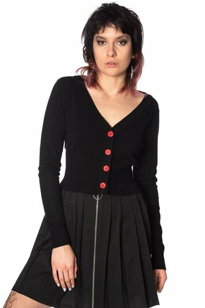 Add a little edge to your wardrobe with this eye-popping gothic cardigan from Banned Apparel! The style is available in several striking colors.
