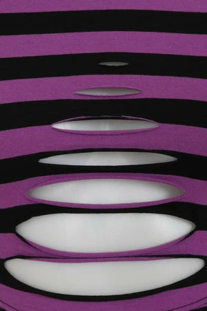 The retro top has striped design, a crew neckline, rip detail, long sleeves and a figure accentuating fit.