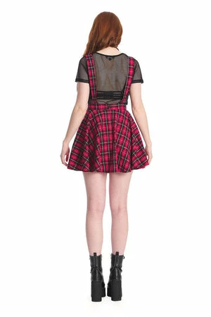 The Pinafore style gothic dress has a square neckline, pockets, a figure accentuating shape and back zipper detailing.