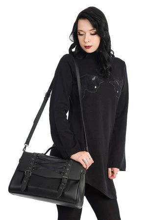 Take on the day in style with this tempting black gothic dress from Banned Apparel!