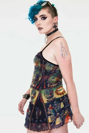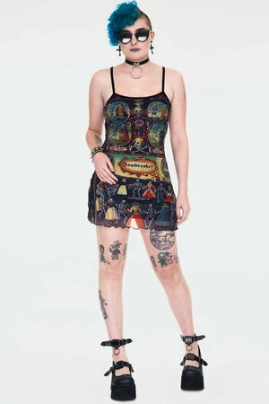 The slip dress has skeletons custom in-house Jawbreaker print, a square neckline, Jawbreaker logo and a flattering fit.