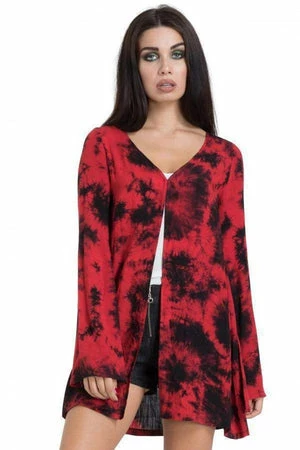 Look crash hot in this awesome Gothic summer kimono from Jawbreaker, with a red and black tie dye themed print. This fantabulous kimono has a loose fitting and long sleeves.