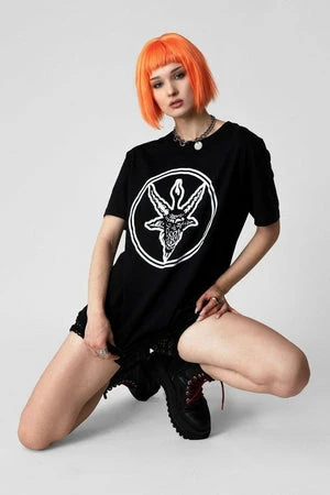 The t-shirt has ”Baphomet” front white print, short sleeves and a regular fit.