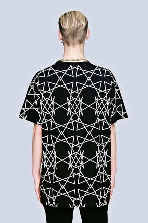 This spectacular unisex t-shirt from Long Clothing, is made in black cotton and has a fascinating infinity white geometric print all-over.