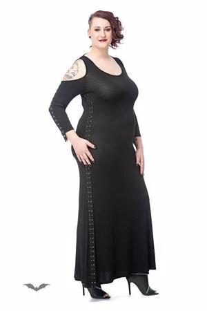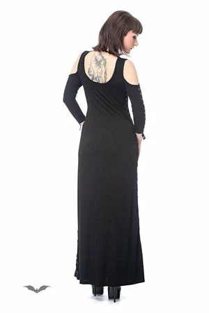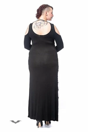 If you are a fan of the Addams’ family, then you will love this gothic dress by Queen of Darkness. This dress is shoulder free and is decorated at the bottom with lace, showing off your style.