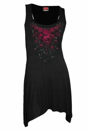 This bottom camisole dress is made from the highest quality, jersey and the interlock uses skin friendly, azo-free, reactive dyes. Featuring blood roses print, a round neckline and a figure accentuating shape.