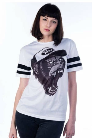 This ladies boyfriend cut t-shirt has a formidable print of a gorilla, a crew neckline, a regular fit and short sleeves.